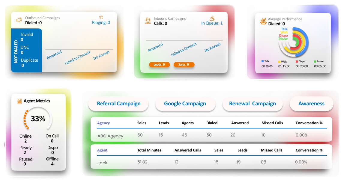 Automate your outbound calling so agents reach more live people, focus on the right conversations, and see clear campaign results on the dashboard.