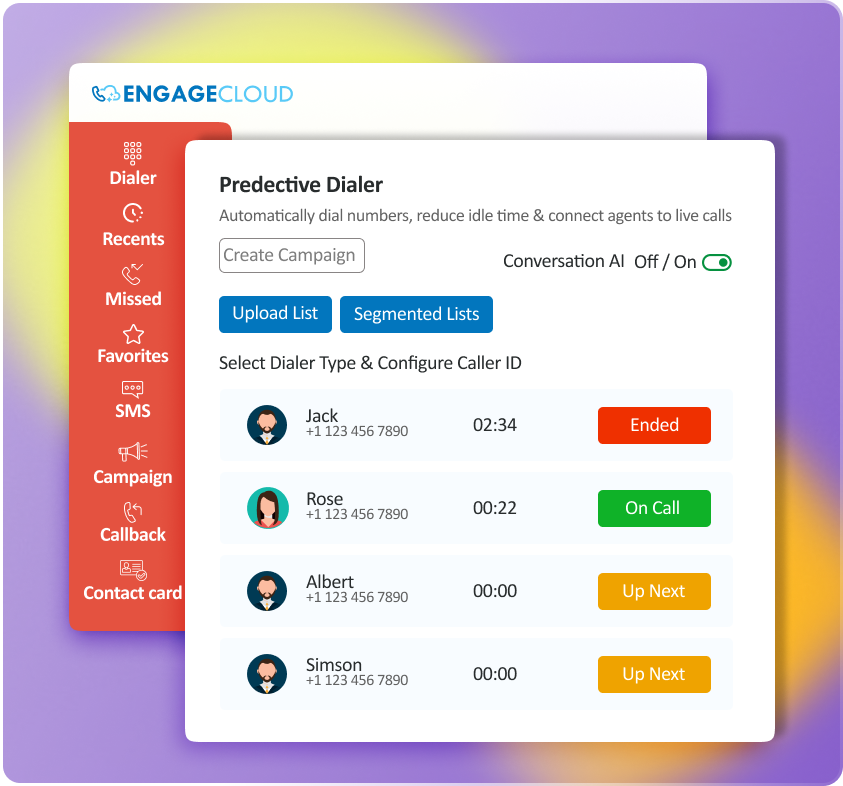 Automate your outbound calling so agents reach more live people, focus on the right conversations, and see clear campaign results on the dashboard.